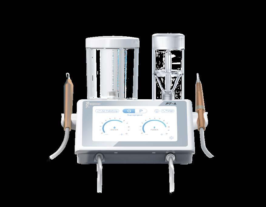 Está compuesto por un escalador ultrasónico y un aeropulidor de bicarbonato/ glicina que permite realizar tratamientos periodontales y endodónticos (subgingivales y supragingivales) de forma precisa, eficaz e indolora. El aeropulidor es ideal para pulir, sin producir arañazos en la superficie dental ni daños leves en los tejidos blandos. Además, ambas piezas de mano son divisibles y autoclavables.