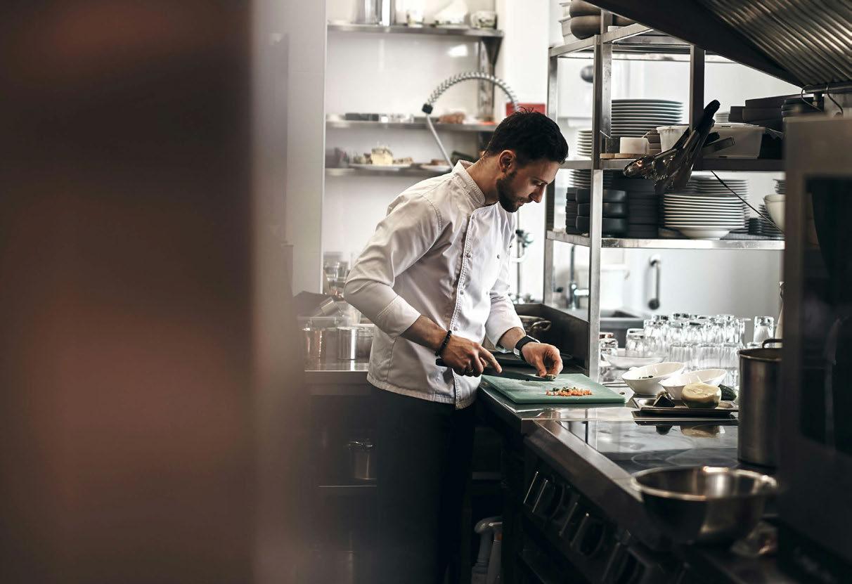jefe de cocina, «es muy importante optimizar los espacios con la maquinaria que queremos incorporar, contar con equipos versátiles que se adapten a las exigencias del día a día y a los distintos servicios, además de garantizar un correcto funcionamiento en la cocina». Entre sus imprescindibles destacan hornos de convección, robots de cocina, pistolas de ahumado y de vapor, amasadoras y abatidores, entre otros.