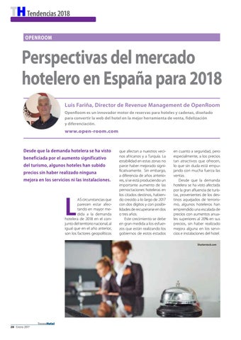Perspectivas del mercado hotelero en España para 2018 Luis Fariña, Director de Revenue Management de OpenRoom OpenRoom es un innovador motor de reservas para hoteles y cadenas, diseñado para convertir la web del hotel en la mejor herramienta de venta, fidelización y diferenciación.