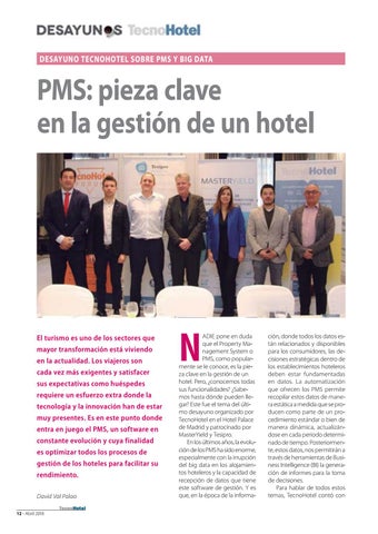 ción, donde todos los datos están relacionados y disponibles para los consumidores, las decisiones estratégicas dentro de los establecimientos hoteleros deben estar fundamentadas en datos. La automatización que ofrecen los PMS permite recopilar estos datos de manera estática a medida que se producen como parte de un procedimiento estándar o bien de manera dinámica, actualizándose en cada periodo determinado de tiempo. Posteriormente, estos datos, nos permitirán a través de herramientas de Business Intelligence (BI) la generación de informes para la toma de decisiones. Para hablar de todos estos temas, TecnoHotel contó con