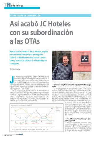 Así acabó JC Hoteles con su subordinación a las OTAs Adrián Suárez, director de JC Hoteles, explica en esta entrevista cómo ha conseguido superar la dependencia que tenían con las OTAs y aumentar además la rentabilidad de su negocio. David Val Palao