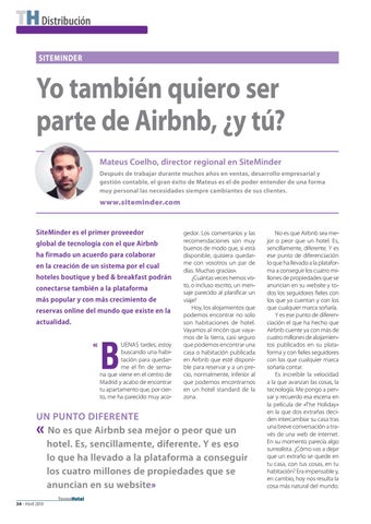 Yo también quiero ser parte de Airbnb, ¿y tú? Mateus Coelho, director regional en SiteMinder Después de trabajar durante muchos años en ventas, desarrollo empresarial y gestión contable, el gran éxito de Mateus es el de poder entender de una forma muy personal las necesidades siempre cambiantes de sus clientes.