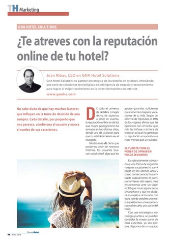 ¿Te atreves con la reputación online de tu hotel? Joan Ribas, CEO en GNA Hotel Solutions GNA Hotel Solutions es partner estratégico de los hoteles en internet, ofreciendo una serie de soluciones tecnológicas de inteligencia de negocio y asesoramiento para lograr el mejor rendimiento de la inversión hotelera en internet.