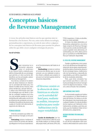 Conceptos básicos de Revenue Management A veces, los artículos más básicos son los que aportan más información a los lectores. Por eso, entre tanta última tecnología, personalización y experiencia, no está de más volver a algunos de los conceptos más básicos de Revenue para asentar los pilares sobre los que debe crecer cualquier estrategia de precios. David Val Palao