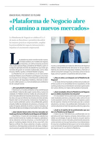munes y compartidas por todos los directivos de responsabilidad, independientemente del sector en el que operen. Además, los sectores de Seguridad, Hotelería y Atención al cliente comparten sinergias muy concretas, tanto en tecnología, como en gestión o experiencia del consumidor. —¿Hay un antes y un después con la Plataforma de Negocio? — Sin duda, hemos impulsado cambios estructurales con el foco puesto en la rentabilidad de los expositores, el networking productivo, la interrelación sectorial, la generación de nuevos clientes y la mejora del resultado empresarial.
