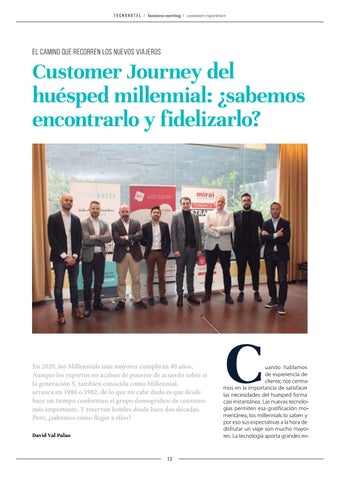 uando hablamos de experiencia de cliente, nos centramos en la importancia de satisfacer las necesidades del huésped forma casi instantánea. Las nuevas tecnologías permiten esa gratificación momentánea, los millennials lo saben y por eso sus expectativas a la hora de disfrutar un viaje son mucho mayores. La tecnología aporta grandes ex-