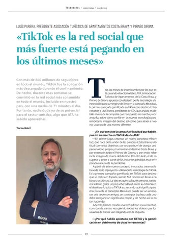 —¿En qué consiste la campaña #Bravitud que habéis puesto en marcha en TikTok desde ATA? —En primer lugar, creamos un nuevo concepto: #Bravitud, que nace de la unión de las palabras Costa Brava y Actitud con varios objetivos: por una parte, el de otorgar una personalidad propia y humanizar el destino Costa Brava y por extensión todo el Pirineo de Girona, y por ende, reforzar la imagen de marca del destino. Por otro lado, el de recuperar y atraer a parte de los visitantes perdidos esta temporada a causa de la pandemia. A partir de este nuevo concepto innovador, creamos la base de todo el proyecto utilizando la tecnología de TikTok. Es la primera campaña gamificada en TikTok para destino que se realiza en España, siendo ATA pionera en llevar a cabo una acción así. La idea es que cualquier persona, turista o residente, grabe un pequeño vídeo durante su estancia en el destino y lo suba a TikTok expresando qué significa para él o para ella el concepto #Bravitud: puede ser un amanecer, una tarde con amigos, un paseo por la playa, cada uno debe otorgarle un significado propio y de hecho así lo están haciendo. Además, hemos creado una web ad hoc www.bravitud. com donde vamos recogiendo todos los vídeos que los usuarios de TikTok van colgando con la etiqueta. —¿Por qué habéis apostado por TikTok y la gamificación en detrimento de otras herramientas?