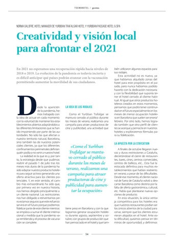 esde la aparición de la pandemia, hemos trabajado con la idea de actuar en cada momento con la voluntad de mantener los establecimientos abiertos adaptándolos a las diferentes limitaciones que se han ido imponiendo por parte de las autoridades. No solo las que afectan a nuestro territorio natural, Barcelona, sino también las de nuestros potenciales clientes, ya que los diferentes confinamientos perimetrales definían quién podía o no venir a nuestro hotel. La realidad es la que es y, por tanto, la estrategia desde que pudimos reabrir el pasado 1 de julio tras los meses más duros de la pandemia ha sido adaptar nuestro producto hotelero para seguir activos generando una oferta atractiva para los clientes potenciales. Y, en este sentido, el cambio más extraordinario ha sido que, por primera vez en nuestra historia, nos hemos dirigido principalmente a un cliente nacional. Las restricciones nos han obligado a reinventarnos pero estamos seguros que este esfuerzo servirá en el futuro porque podremos fidelizar parte de este cliente mientras se empieza a sumar el cliente internacional a medida que la pandemia vaya remitiendo y el proceso de vacunación se complete.