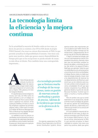 «La tecnología permitió que se limitara mucho el trabajo de las recepciones, tanto en gestión de reservas como de overbooking o gestión de precios. Además de la incidencia que tenían en la eficiencia de la venta»