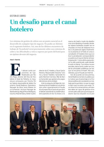 Un desafío para el canal hotelero Los sistemas de gestión de cobros son un punto esencial en el desarrollo de cualquier tipo de negocio. No podía ser distinto en el segmento hotelero. Así, uno de los últimos encuentros de trabajo de Tecnohotel versó precisamente sobre esos sistemas de cobro y las dificultades y retos a superar por parte del hotel para un óptimo devenir del negocio.