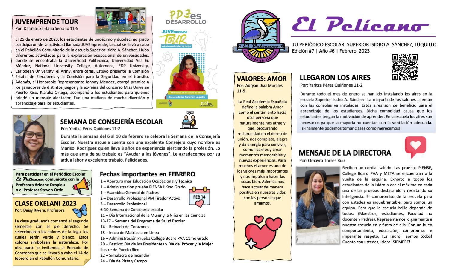 Periódico Escolar El Pelícano - Febrero 2023