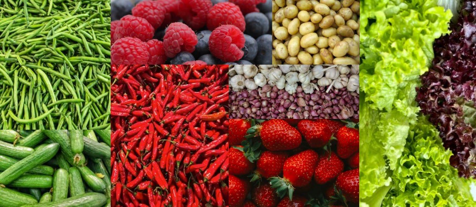 Aubergine, Beetroot, Blackberries, Broad Beans, Broccoli, Carrots, Chillies, Courgettes, Cucumber, Garlic, Halibut, Lettuce, Peas, Potatoes, Raspberries, Runner Beans, Lamb, Spring Onions, Strawberries, Summer Squash, Sweetheart Cabbage, Tomatoes, Trout, Turnips, Venison, Watercress