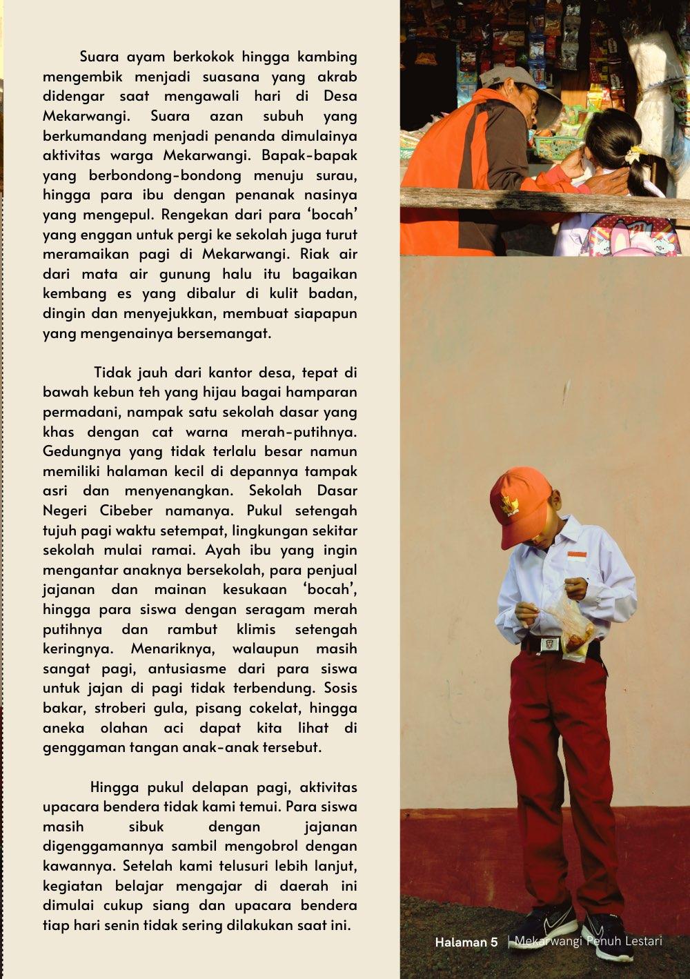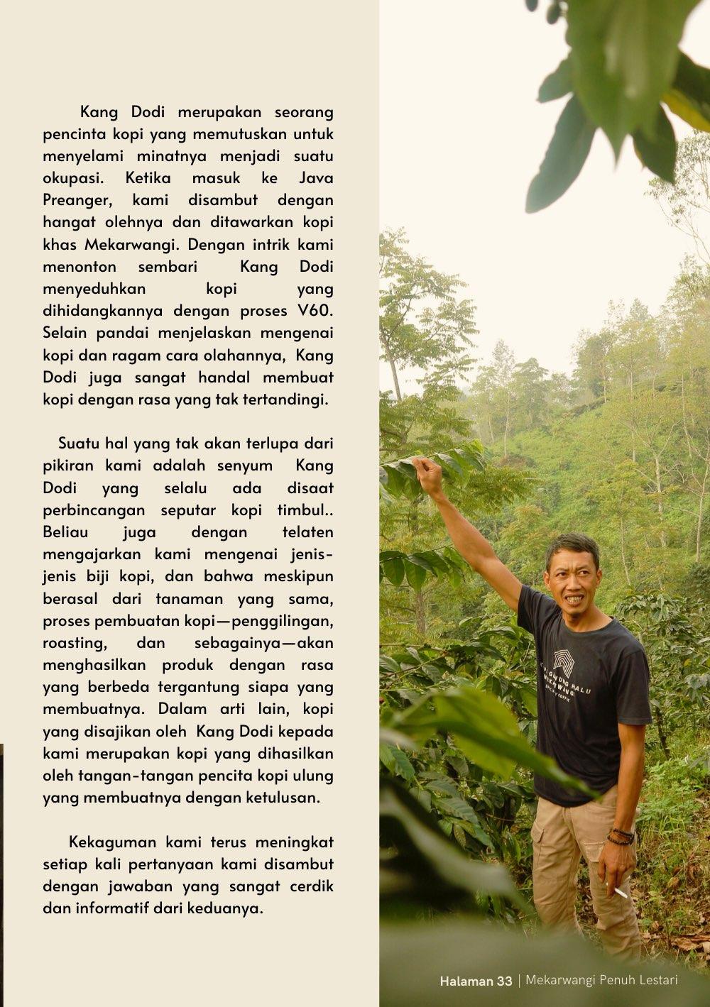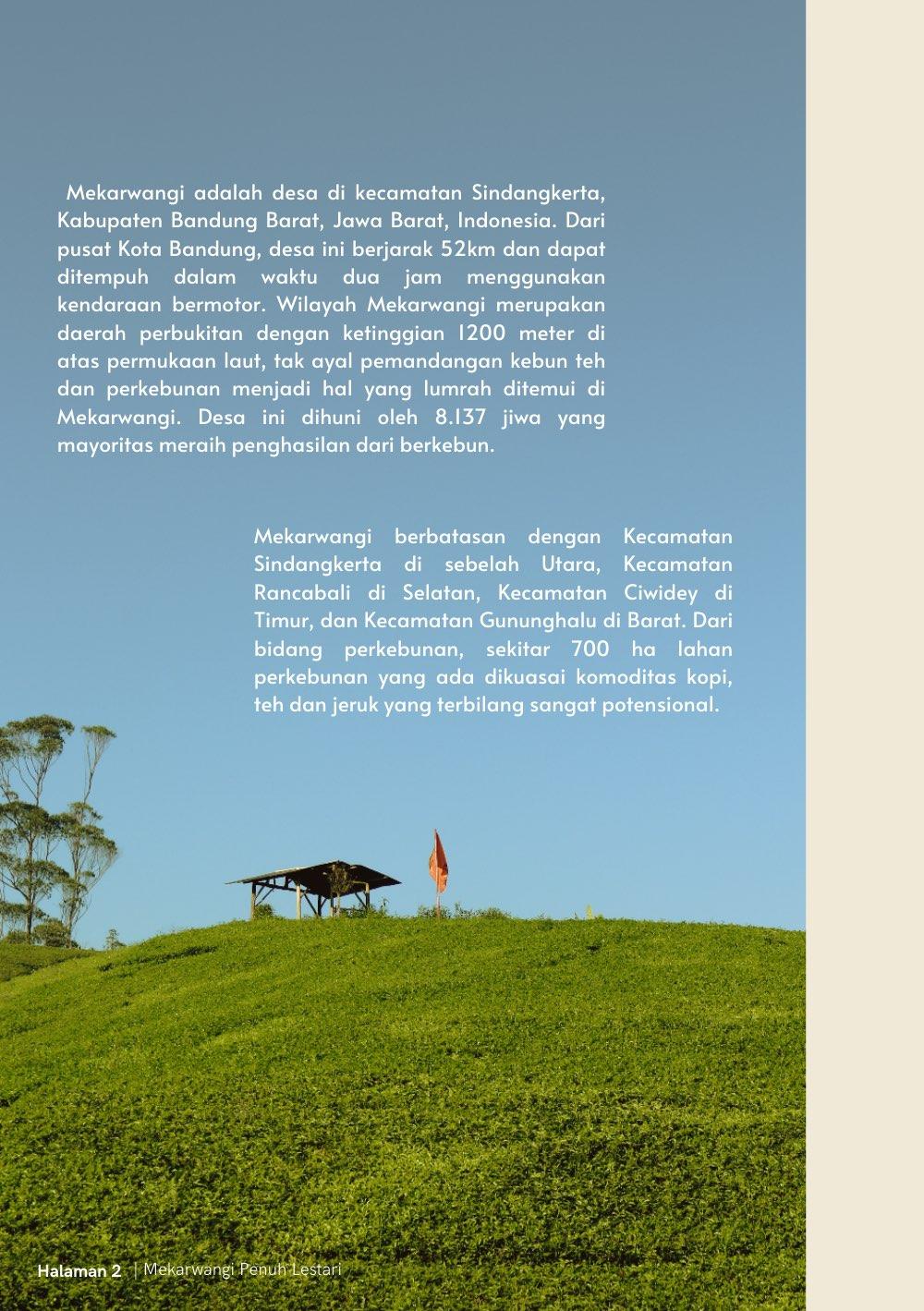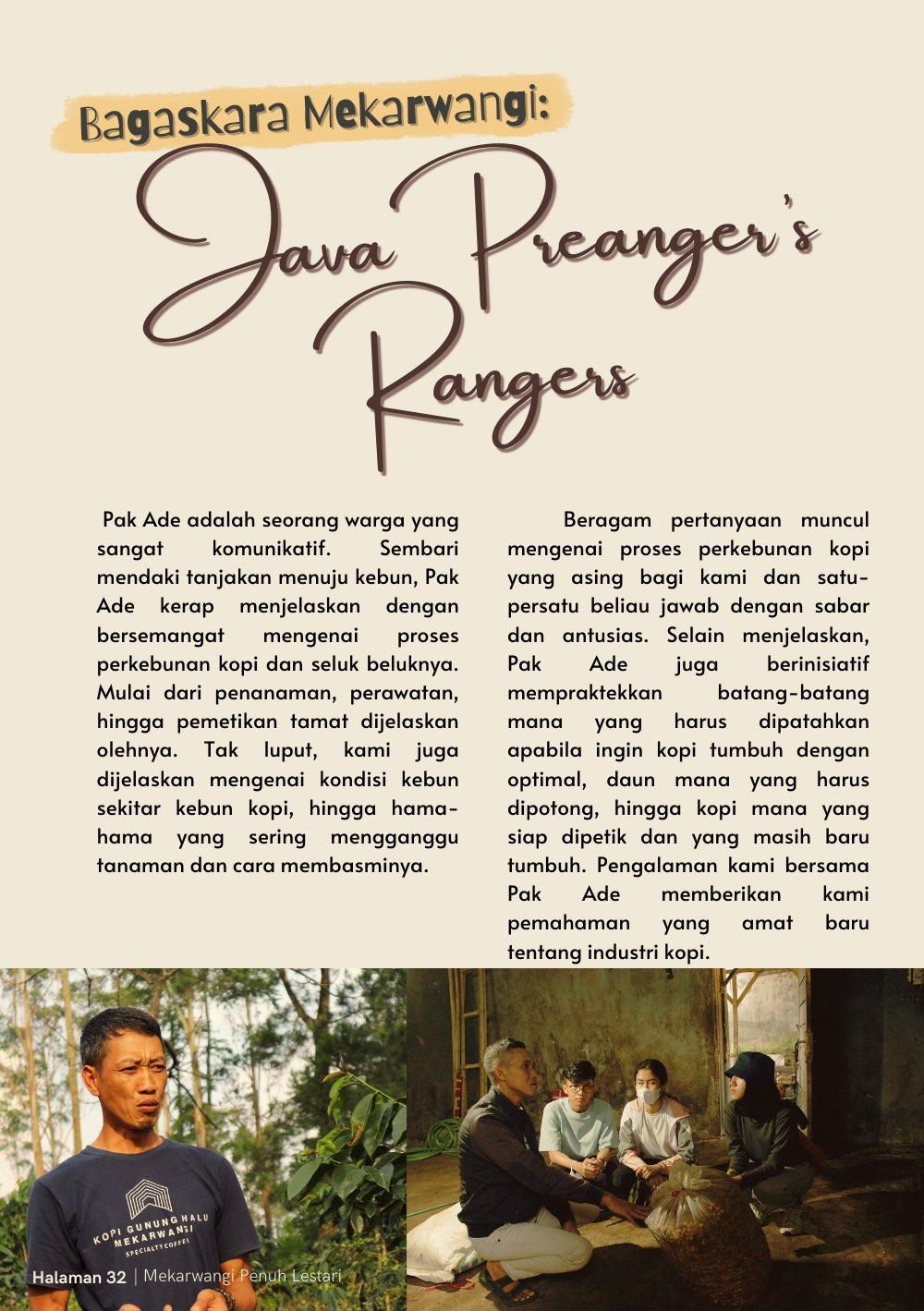 Di kawasan perbukitan di Kecamatan Sindangkerta, Kabupaten Bandung Barat, terletak sebuah desa yang dikenal akan wisata alam dan wisata budayanya. Desa Mekarwangi namanya. Sebagian besar penduduk Desa Mekarwangi hidup dari hasil perkebunan seperti teh, kopi, dan sayur-mayur. Bahkan, kopi yang diproduksi di desa ini telah menembus pasar internasional dan meraih penghargaan di Paris. Selama 5 hari hidup bersama penduduk sekitar, kami mengamati proses pengolahan kopi, dari biji kopi yang masih melekat di pohon hingga menjadi kopi yang siap untuk dipasarkan. Selain itu, kami berkesempatan untuk mengunjungi peternakan lebah madu dan mencicipi madu langsung dari sarangnya. Sebelum kembali ke Kota Bandung, kami juga mengunjungi Sanggar Kesenian Mustika Wangi untuk belajar membuat wayang dari daun dan memainkan kesenian musik Bangkong Reang.