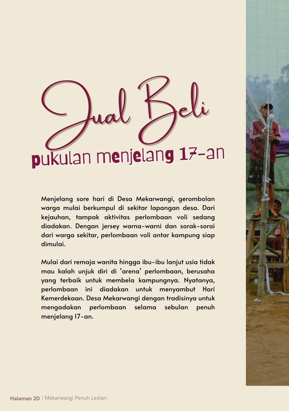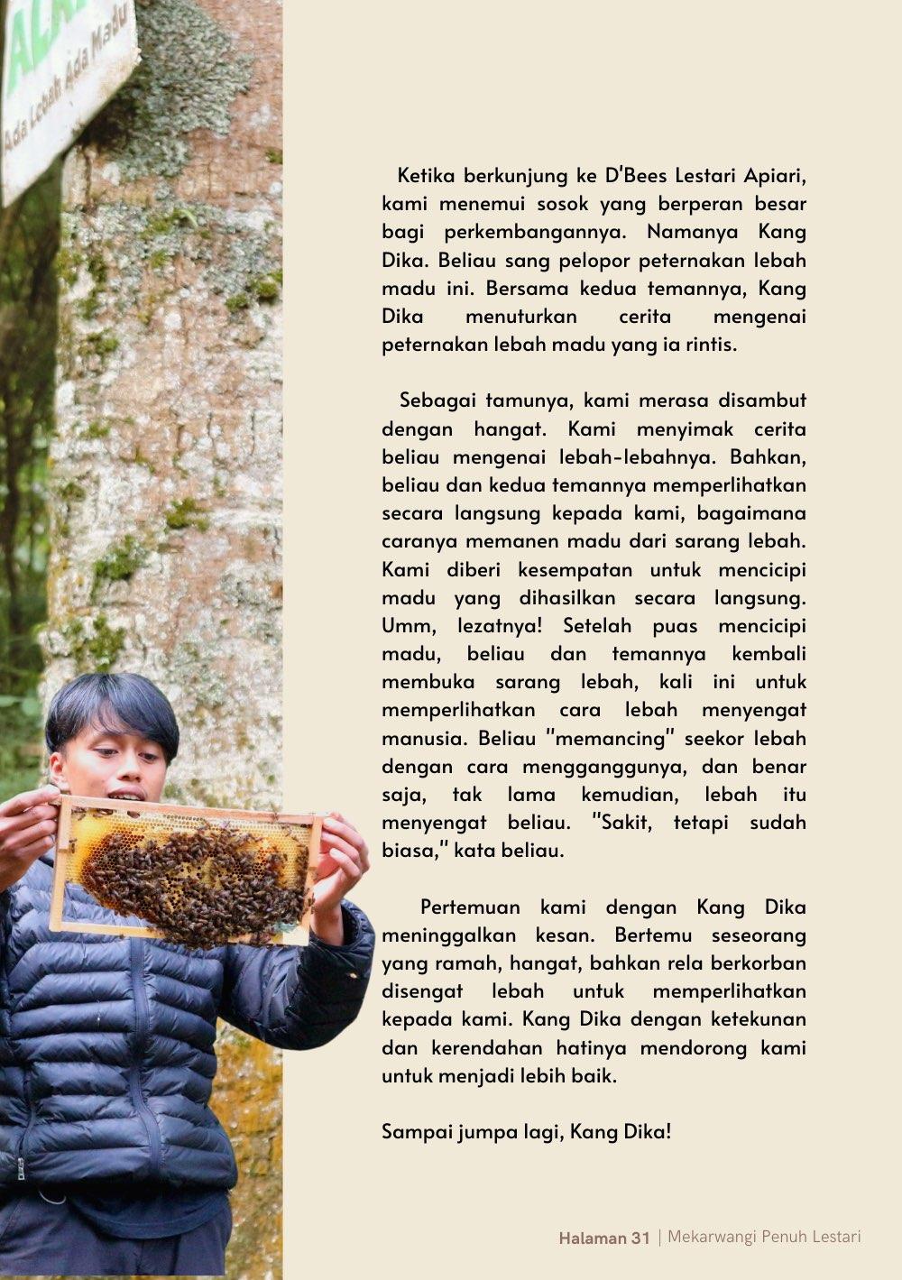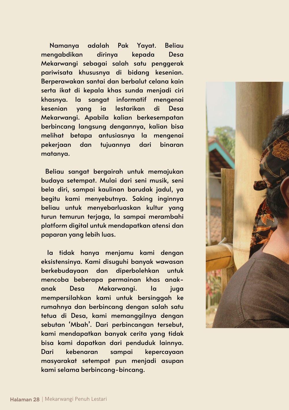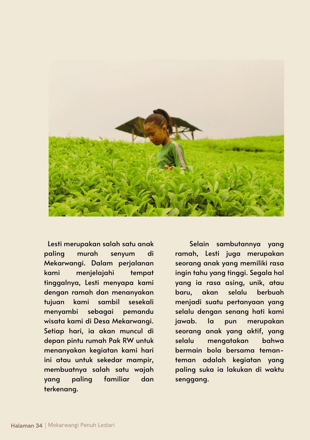 Di kawasan perbukitan di Kecamatan Sindangkerta, Kabupaten Bandung Barat, terletak sebuah desa yang dikenal akan wisata alam dan wisata budayanya. Desa Mekarwangi namanya. Sebagian besar penduduk Desa Mekarwangi hidup dari hasil perkebunan seperti teh, kopi, dan sayur-mayur. Bahkan, kopi yang diproduksi di desa ini telah menembus pasar internasional dan meraih penghargaan di Paris. Selama 5 hari hidup bersama penduduk sekitar, kami mengamati proses pengolahan kopi, dari biji kopi yang masih melekat di pohon hingga menjadi kopi yang siap untuk dipasarkan. Selain itu, kami berkesempatan untuk mengunjungi peternakan lebah madu dan mencicipi madu langsung dari sarangnya. Sebelum kembali ke Kota Bandung, kami juga mengunjungi Sanggar Kesenian Mustika Wangi untuk belajar membuat wayang dari daun dan memainkan kesenian musik Bangkong Reang.