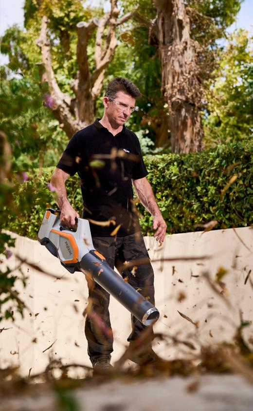The AIRION ESSENTIAL leaf blower with its integrated battery delivers up to 23N of power in boost mode and 19N in regular working speed, making it the perfect tool for clearing up leaves and debris on the ground, even water-logged. The ergonomic design is a key advantage, with the angled air intake inherited and patented by PELLENC from earlier models. This design creates a linear force to prevent ‘wrist strain’ and reduce noise perceived by the user. By combining speed, power, manoeuvrability, and user comfort, this blower meets the needs of landscaping professionals.