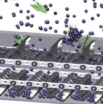 • The screen rollers allow the sorted berries to pass through and remove the leaf stems and other waste from the sorting table. 100% of leaves are removed as well as 95% of leaf stems.