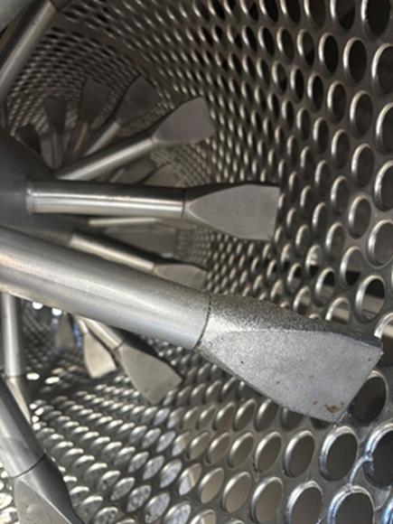 • Arbre d’égrappage en inox avec doigts inox et spatules -réglables