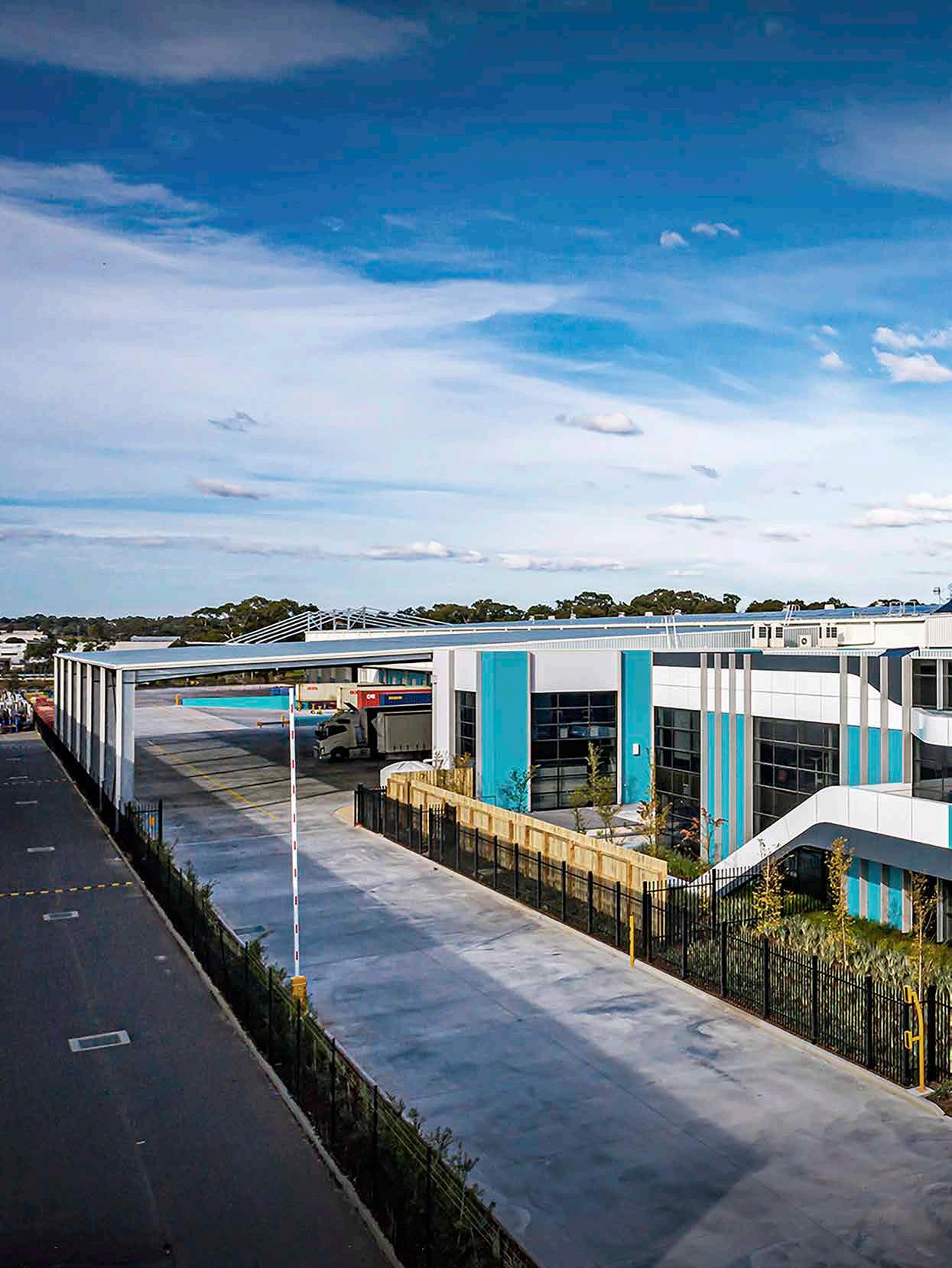 Purpose built 23,807m² facility delivered 2021. Comprising 2,586m² standalone store support office, 20,899m² warehouse and 322m² battery charge area. A landscaped internal courtyard acts as a nexus between the buildings, with level 1 sky-bridge access between.