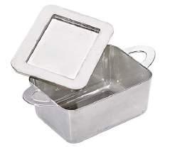 L 58 x l. 58 x Alt: 30 mm Pacchetto : 500 pcs (5 pacchetti da 100 pcs) Id: 209MBLOUCY Contenitore in PS argentato con manici e coperchio