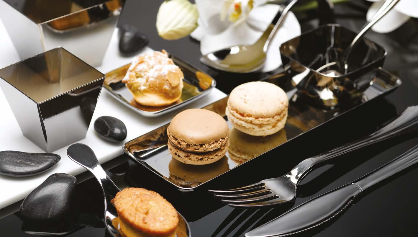 Piattini e bicchierini fingerfood in plastica185-186 Contenitori in PS argentato