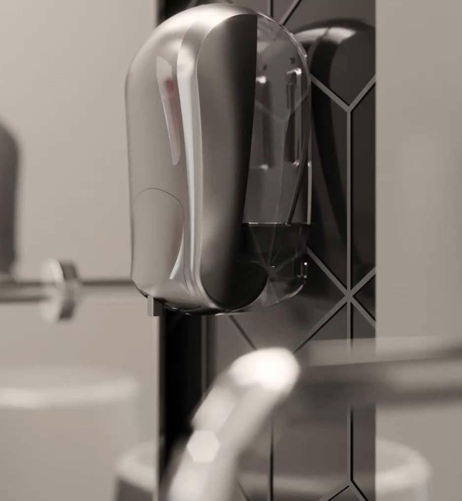 Design futuristico e accattivante per la Linea Skin , che incarna in sé il meglio dello stile contemporaneo e della tecnologia. Una selezione completa di accessori bagno – dispenser sapone, carta, cestini e supporti –caratterizzati da un design minimal e moderno , si declina in cinque varianti colore.