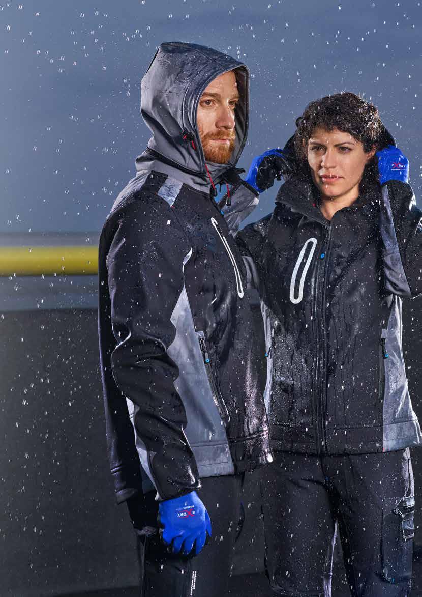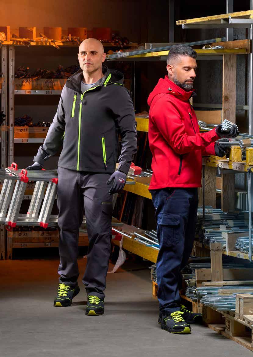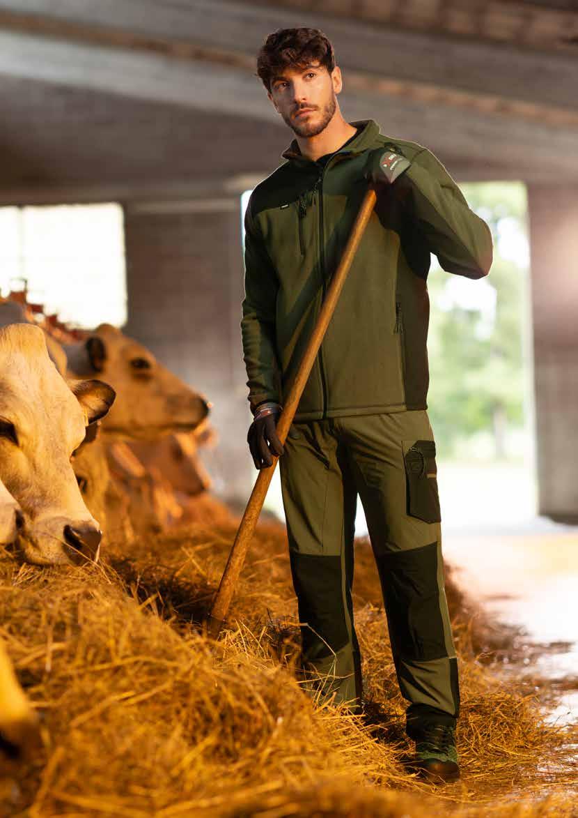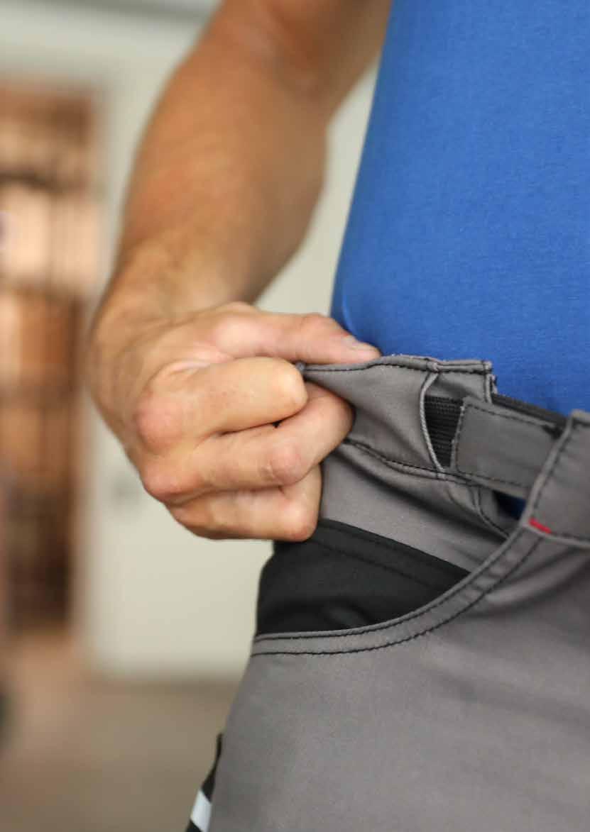 Abbigliamento composto da speciali dettagli elastici, regolabili e inserti in tessuti specifici per rendere i capi adatti a qualsiasi condizione d’uso.