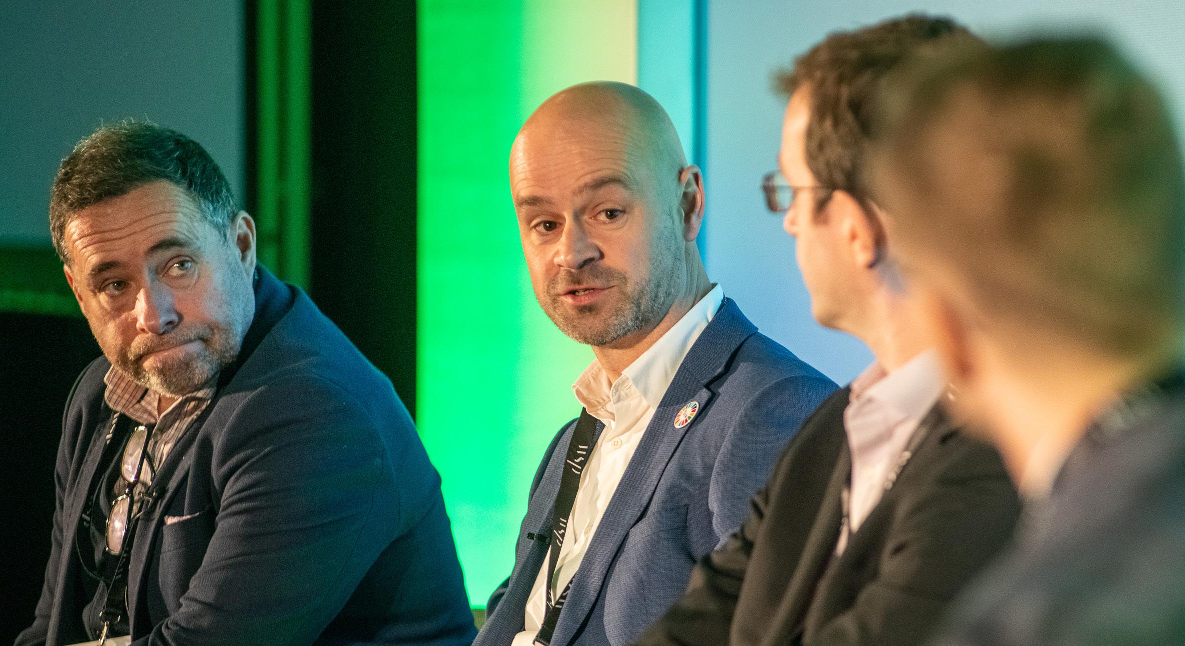 The panel discussion featured David Rennie, Head of Low Carbon Energy at Scottish Enterprise, Brian McLean, Strategy Director at AGS Airports, and Gordon Stewart, Rail Planning and Operations at Arup.