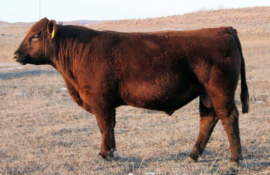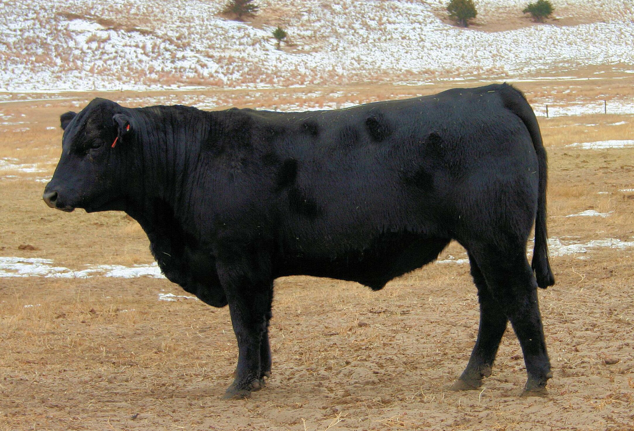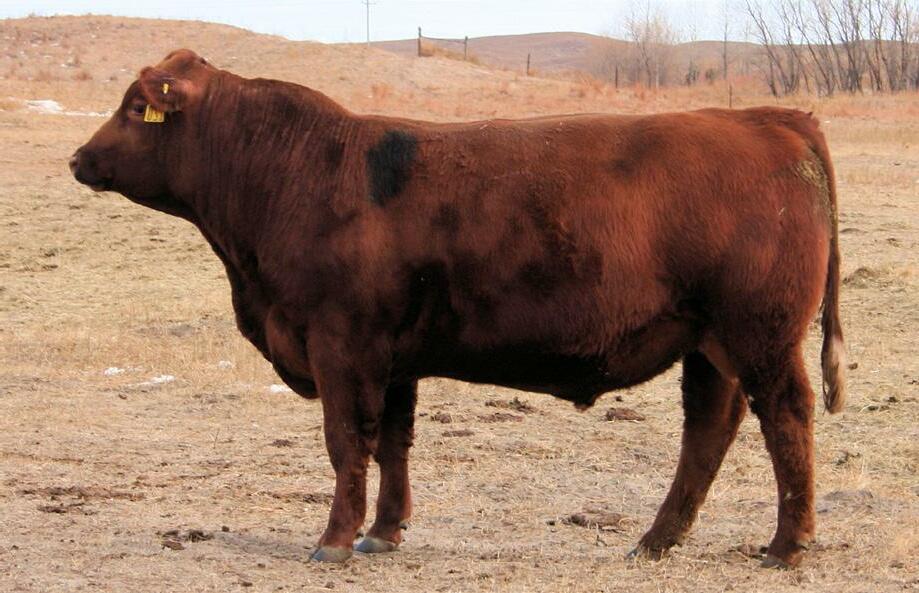 The bulls were wintered as calves on a ration of corn silage, chopped hay and dry distillers. They were ran in large pastures on grass the following summer. In October the bulls were started on Bull Challenger pelleted ration at less than 1% of their bodyweight along with pasture and long stem meadow hay. They were run in a large hill pasture promoting exercise and fitness. The bulls were fed with soundness in mind and to develop them for trouble free use.