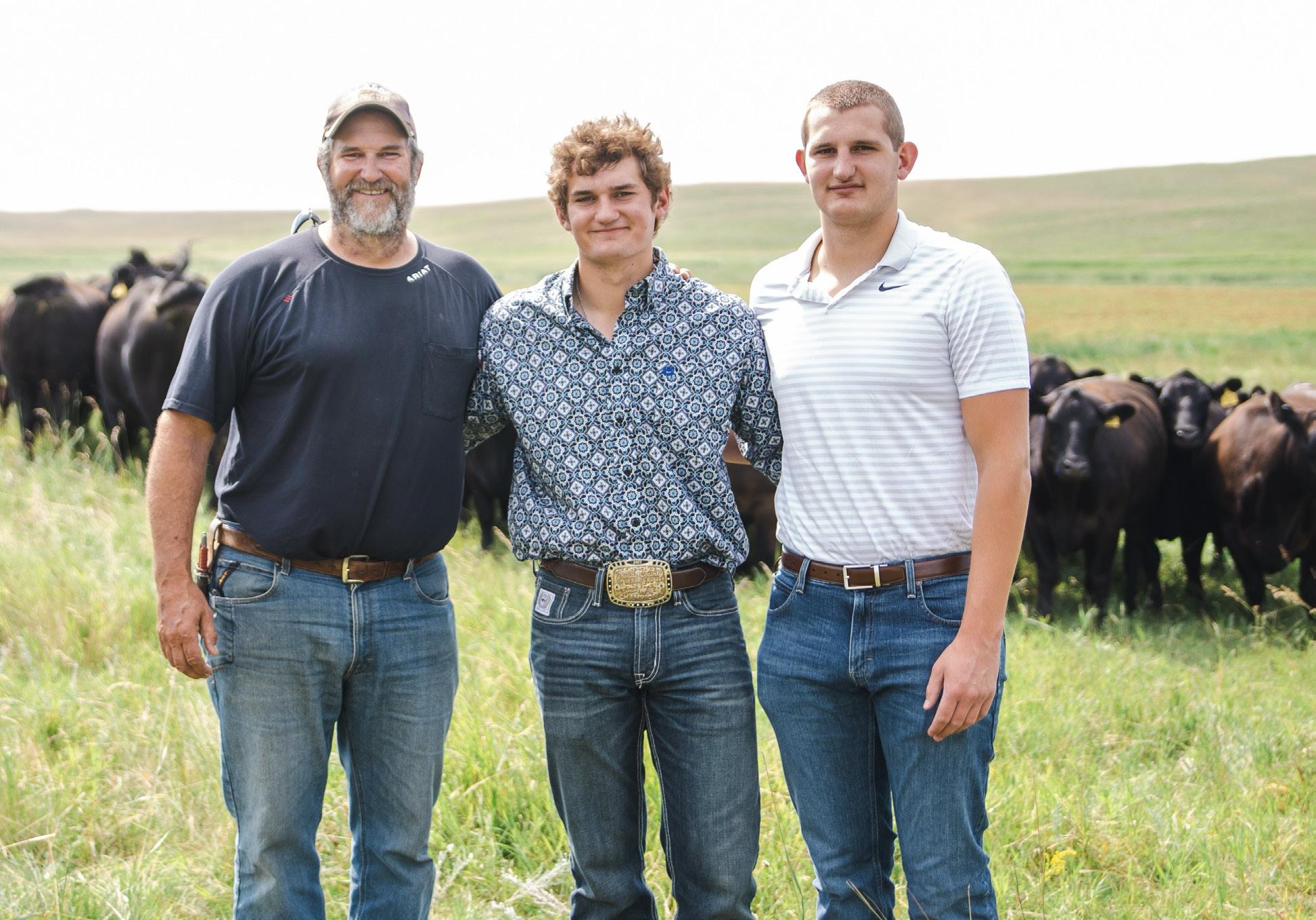 Lance says he buys well-built bulls from us earning the top ten percent for wean performance and milk. His moderate dams produce 650-pound calves on average when they sell the beginning of November. They replenish females with their own stock. Lance and Kelly have three daughters that assist them on the ranch. Their youngest, Lauren, was tasked with operating their self-propelled conditioner to cut all their Sudan grass this summer. Cassidy and Katelynn, who are seniors, have fenced miles and miles and will attend UND to pursue nursing degrees next fall.