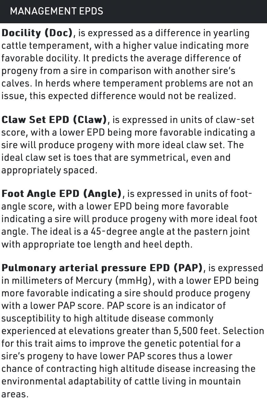 SIRE G A CERTAINTY 155 # 20205218 PRODUCTION/MATERNAL/MANAGEMENT CED BW WW YW YH SC -4 +5.3 +81 +142 +1.1 +1.22 HP CEM MILK MW MH $EN +15.1 +13 +29 +86 +1.1 -32 DOC CLAW ANGLE PAP HS +10 +.49 +.50 -33 +.52 CARCASS/$VALUES CW MARB RE FAT $W $F $B $C +79 +.35 +.85 +.045 +65 +114 +153 +264 SIRE: HOOVER NO DOUBT DAM: G A COLOSSAL ANNE 013 SIRE G A PAPPY 132 # 20205245 SIRE: BALDRIDGE PAPPY DAM: G A ERISKAY 848 SIRE G A RAINDANCE 922 # 19629257 SIRE: S A V RAINDANCE 6848 DAM: G A ERISKAY 276 SIRE G A REGARD 633 # 18600332 SIRE: S A V RESOURCE 1441 DAM: G A ANNE 113 PRODUCTION/MATERNAL/MANAGEMENT CED BW WW YW YH SC +8 +.3 +69 +115 +.3 +1.08 HP CEM MILK MW MH $EN +14.0 +12 +31 +15 +.3 +0 DOC CLAW ANGLE PAP HS +13 +.54 +.40 +1.98 +.68 CARCASS/$VALUES CW MARB RE FAT $W $F $B $C +48 +1.15 +.75 +.039 +79 +78 +154 +295 PRODUCTION/MATERNAL/MANAGEMENT CED BW WW YW YH SC +9 +1.0 +65 +124 +.7 +1.46 HP CEM MILK MW MH $EN +11.4 +9 +29 +67 +.2 -23 DOC CLAW ANGLE PAP HS +10 +.53 +.60 +1.19 +.56 CARCASS/$VALUES CW MARB RE FAT $W $F $B $C +54 +.16 +.86 +.022 +63 +98 +131 +222 PRODUCTION/MATERNAL/MANAGEMENT CED BW WW YW YH SC +1 +3.7 +57 +108 +.2 +.87 HP CEM MILK MW MH $EN +13.8 +5 +19 +70 +.3 -19 DOC CLAW ANGLE PAP HS +25 +.52 +.45 -3.32 +.68 CARCASS/$VALUES CW MARB RE FAT $W $F $B $C +57 +.06 +.98 -.025 +38 +112 +145 +243