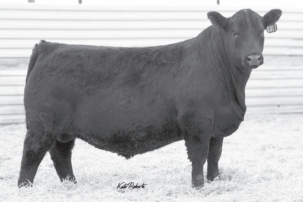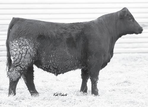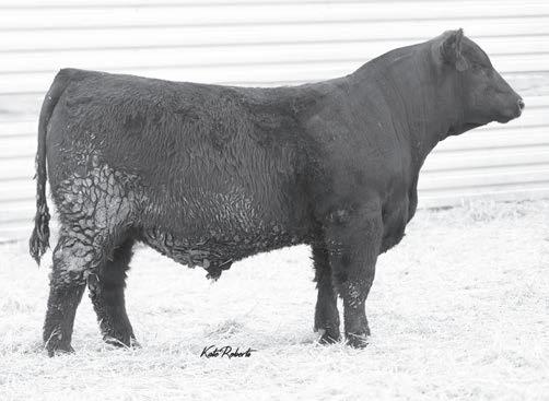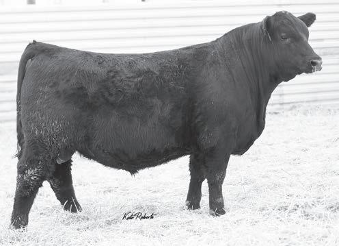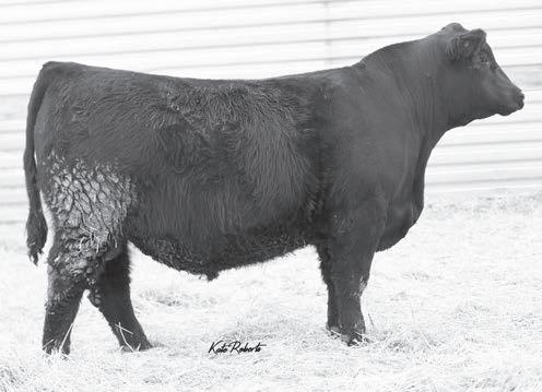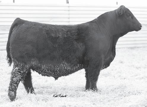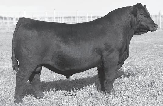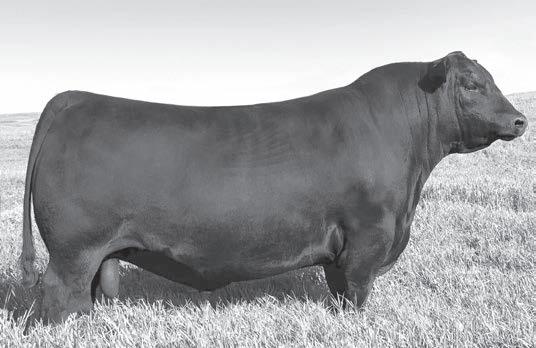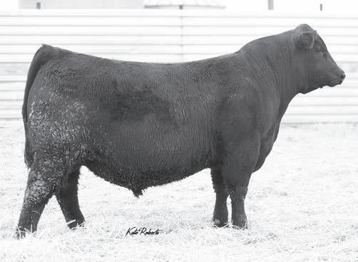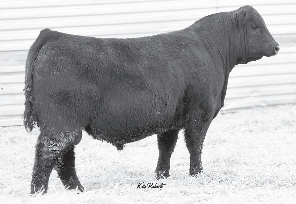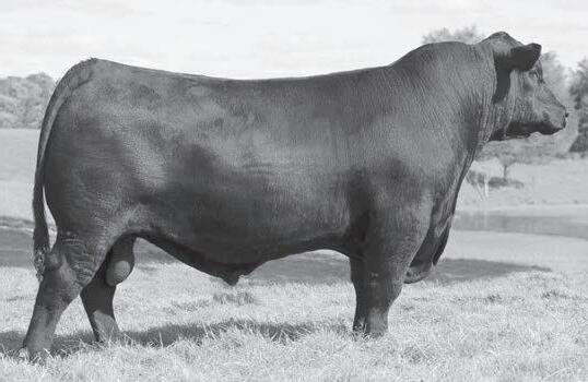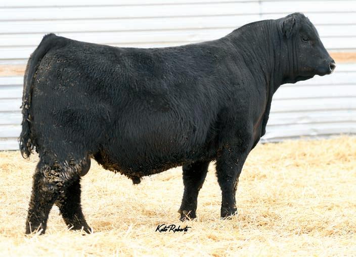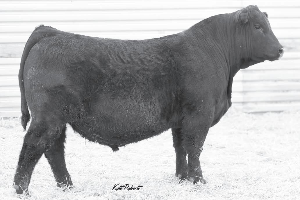 Long, wide, deep bodied bull that will work on heifers and have the power to go to your cow herd. Very structurally correct, big scrotal bull that is very good in all areas of production.