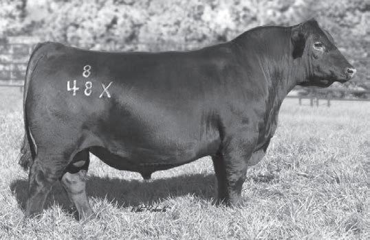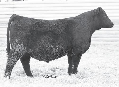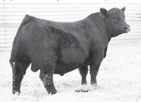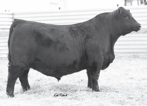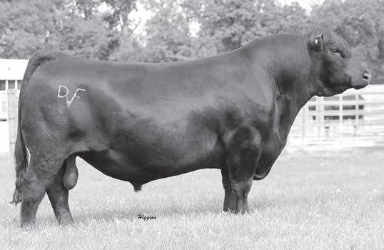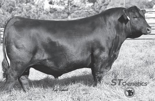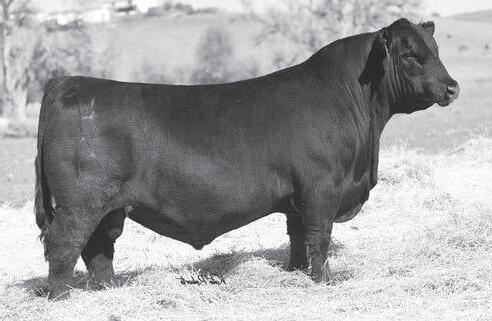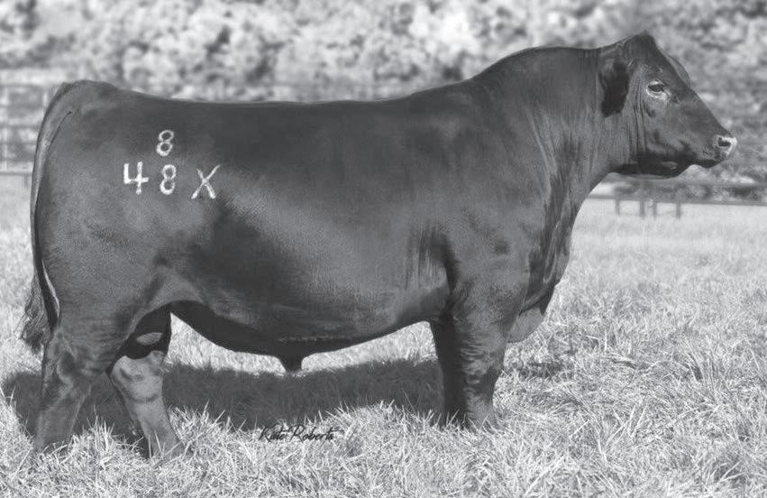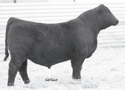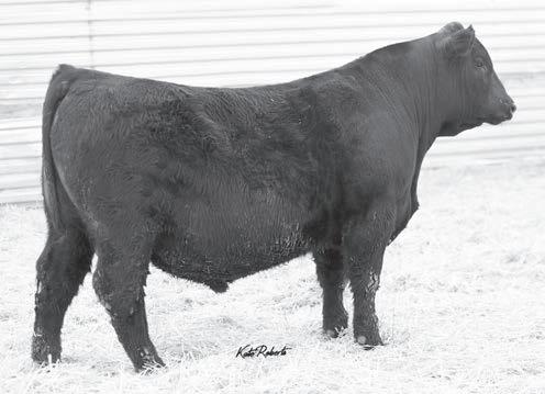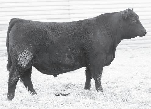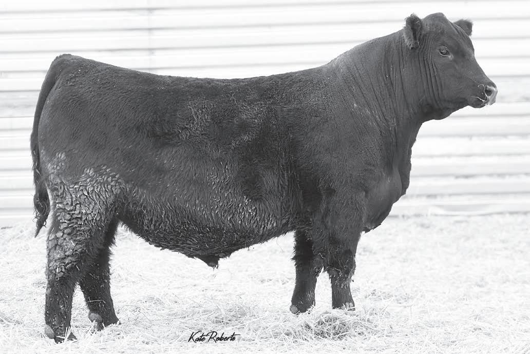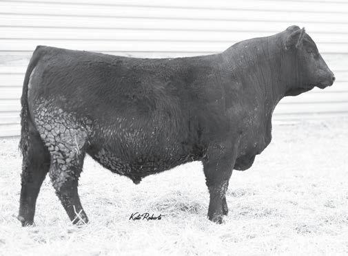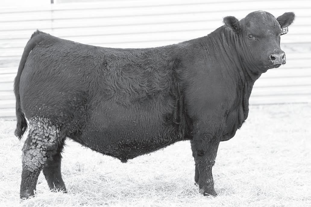 Long, wide, deep bodied bull that will work on heifers and have the power to go to your cow herd. Very structurally correct, big scrotal bull that is very good in all areas of production.