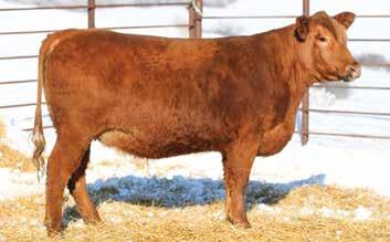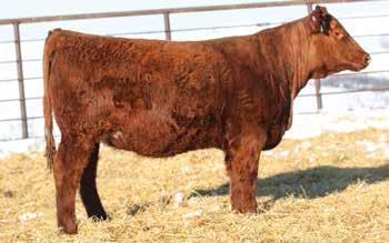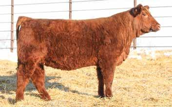 31 Bred Heifers Lot 63 Here is that big, broody, red bred heifer that everyone wants! Talk about a powerhouse type of cow-to-be, yet she is still put together very well from the ground up. AI bred on 5/24/22 to IR Imperial D948 (ASA#3210738). Due with a bull calf on 3/3/23. BD: Act. BW: ADj WW: Reg. # WS ALL ABOARD B80 KSR CASIE 654C WS ALL-AROUND Z35 W/C UNITED 956Y WS LITTLE SISTER W37 KSR BLAZIN HOT 442A CE BW WW YW MCE MM MW CW YG MB API TI EPDs 13.0 -0.5 87.1 134.2 6.7 19.5 63.0 40.7 0.29 134.3 90.0 -0.39 63 KSR JOLIE 254J Polled Red Purebred 2/22/21 78 573 4036027 Lot 64 Another dark red bred heifer that is well made and structured. This red bred is feminine all the way through her neck and shoulders. Pasture exposed to KSR Double Down (ASA#3560696) and due to calve on 5/20/23. BD: Act. BW: ADj WW: Reg. # GCF/ZEIS MR COMMANDERO KSR DESIREE 782D CNS DREAM ON L186 WS SOLOMAN X186 ZEIS MISS FORTUNE J79 KSR BLAZIN HOT 442A CE BW WW YW MCE MM MW CW YG MB API TI EPDs 13.4 -0.3 64.7 92.0 5.7 16.2 48.5 20.9 0.18 129.5 72.6 -0.39 64 KSR JENNA 252J Polled Red Purebred 2/20/21 70 533 3991473