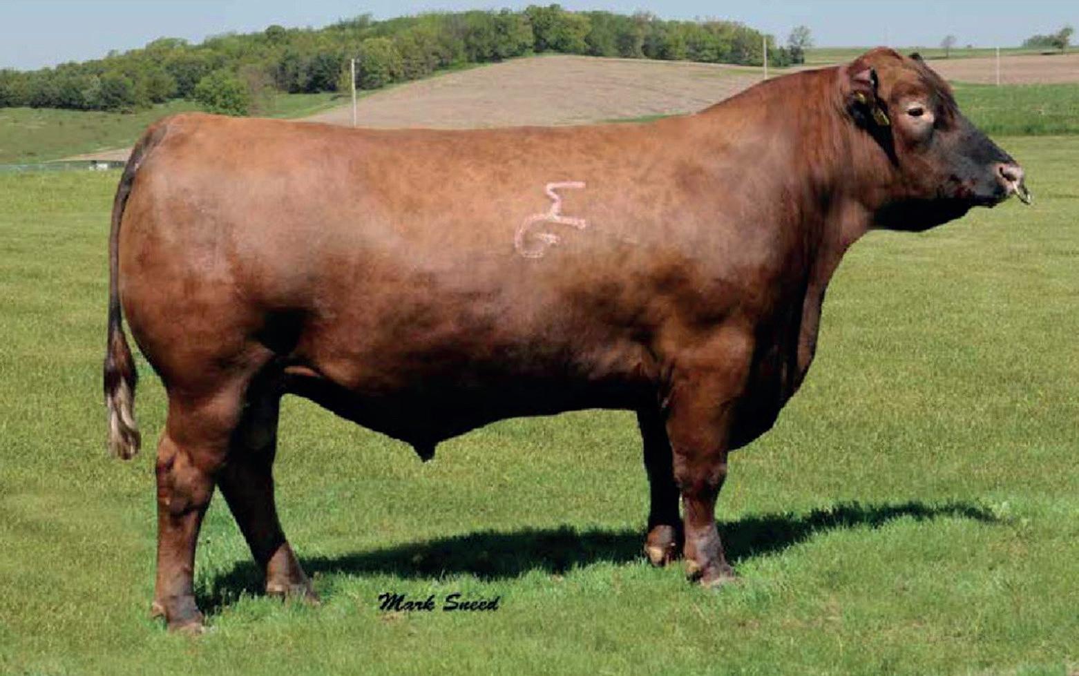 We kick off the grindstone bulls by bringing you lot 7. To make it in the top 8, these bulls have to stand out, and it was hard to miss this bull's awesome phenotype and dark cherry red color. When you look at the EPDS, you'll find an impressive set ranking in the top 4% for ProS, top 11% HB and top 6% for Stay!