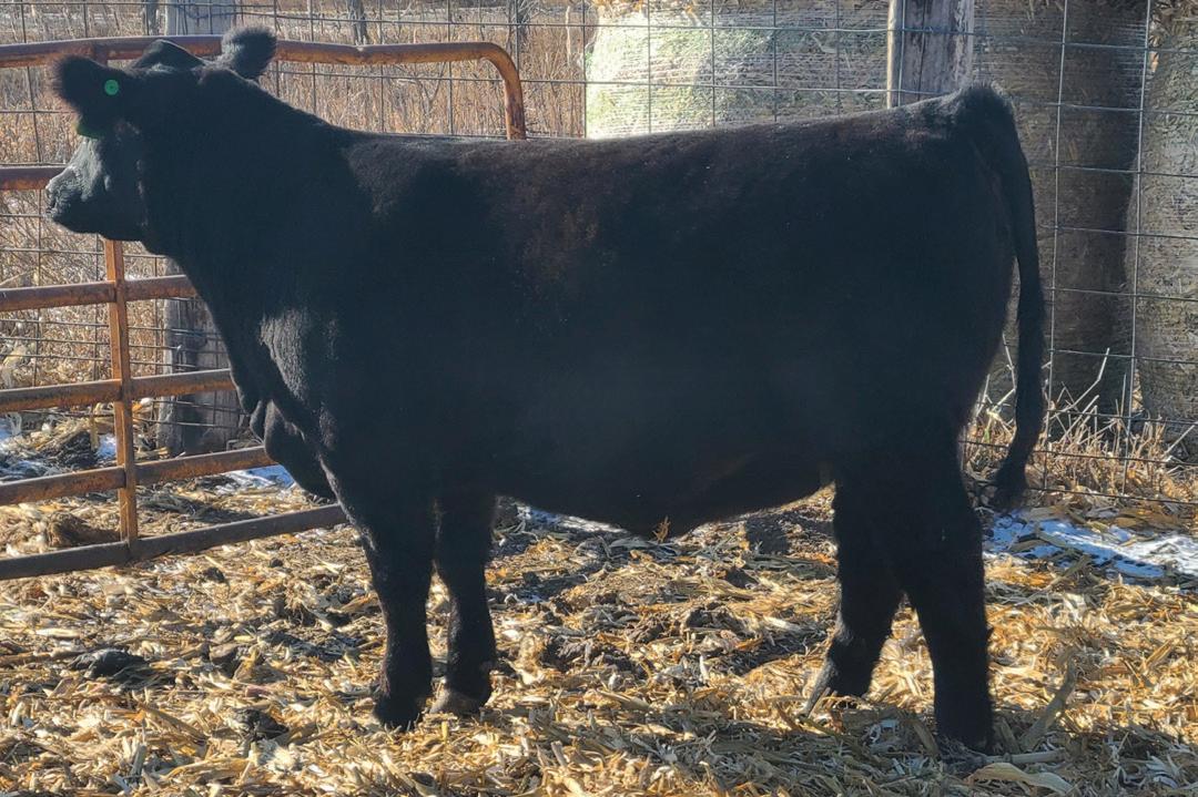 • Black Annie 1543 is a super broody, highly maternal, powerhouse of a young female. She is an embryo calf out of our very best International daughter flushed to the world record selling bull SAV America. Her maternal granddam is probably the best cow ever raised at Pine Coulee Angus Ranch in Montana, Black Annie U7. Our Black Annie 1543 is one of 4 flush sisters and 1 flush brother. Her flush brother was the 4th high seller in last year’s production sale for $8,000. And her 3 flush sisters are all retained in our herd. She is Vern’s pick of the litter.