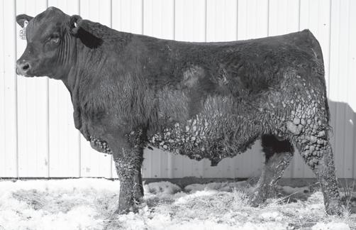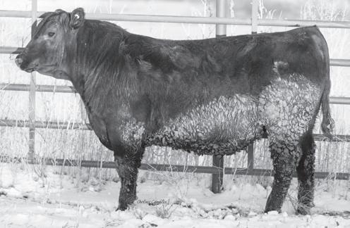 • Stout, solid made cow bull, will sire a nice set of feeder calves or F1 replacement females. Full pigment on both eyes, dam is a 10-year-old cow with a highly maternal pedigree. Bought her as a six-year-old from Churchill’s program out of MT. Ratios IMF110, WW- 95, YW-93, Top 25% for WW & YW, Top 23% $BMI