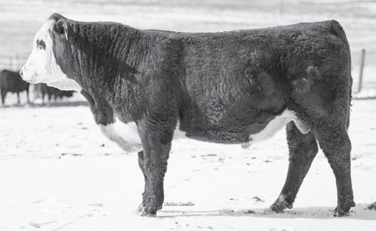• Use on big heifers or young cows. Full pigment both eyes. More moderate framed Hereford. Have half-sisters in production with good pigment and great udders. Ratios WW-102, YW-98, REA-109, IMF-98, Top 15% CE, Top 19% REA, Top 31% $BMI