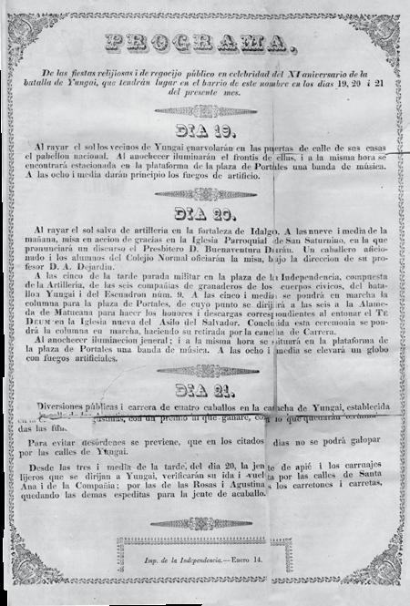 Programa de las fiestas Religiosas del XI aniversario de la Batalla de Yungay