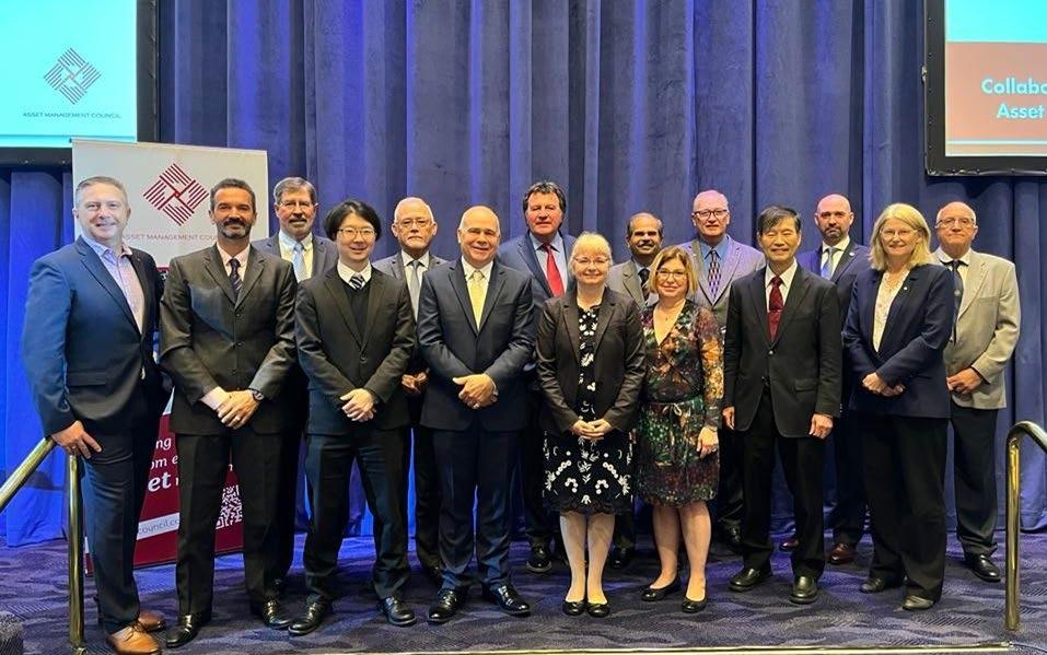 ↑ Inset: J.-P. Pascoli and Nigel D’Souza represent PEMAC at the meetings of the Global Forum on Maintenance and Asset Management. This photo was taken at the most recent GFMAM face to face meeting held in conjunction with the Asset Management Council of Australia’s annual conference AMPEAK in April 2023. J.-P. is second from the right in the back row. Nigel was not able to attend the meeting. J.-P. Pascol and Susan Lubell represent PEMAC at the World Partners in Asset Management which also met in conjunction with AMPEAK. Sue, who serves as Chair of the WPiAM, attended the meeting remotely.