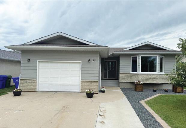 1,250 sq ft home blends comfort, function, and modern style. The bright, open main floor includes a spacious kitchen with a corner pantry, cozy breakfast bar, and seamless living/dining areas. The primary bedroom features a walk-in closet and 4-piece ensuite, with a second bedroom and full bath nearby. The finished basement offers two more bedrooms, a 3-piece bath, and a large rec room—ideal for entertaining or a home theatre. The attached garage has two large bays (12x26 & 12x24) plus side RV parking. Enjoy the huge pie-shaped yard with a covered deck for year-round outdoor living. $449,900 3 4 NEW LISTING