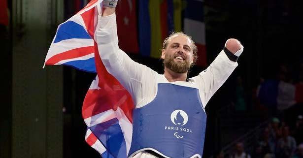 AFTER a heartbreaking withdrawal from the Tokyo Paralympics due to injury, Matt Bush made a triumphant return to the Paralympian stage in 2024, securing gold in spectacular fashion. The former Tasker Milward School pupil from Haverfordwest achieved the ultimate accolade in taekwondo by defeating Neutral Paralympic athlete Aliaskhab Ramazanov 5-0 in the men’s K44 -80kg final. Reflecting on his victory, Matt commented, “I’ve faced him before, and he’s a formidable fighter. I had to be at my best, which required a solid game plan. It was a tough fight, but I had to give it everything.”