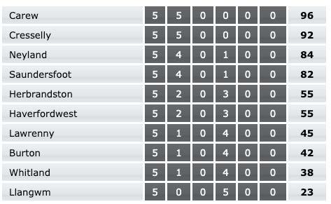 DIvISION 1 – CAREW, CRESSELLY CONTINUE UNBEATEN CHARGE