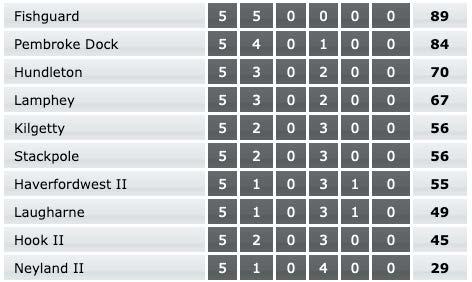 Fishguard remain unbeaten after bowling out Neyland II for just 32 and cruising to a 10-wicket win. Pembroke Dock continued their strong form with a 9-wicket win over Kilgetty, led by Jake Davies (63no) and George Smith (60no).