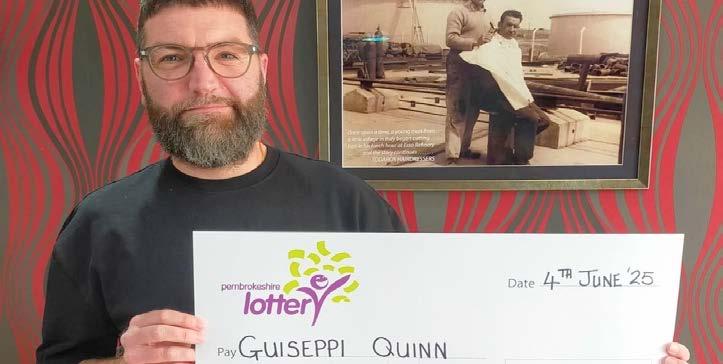 Guiseppe Quinn is celebrating a windfall this week after winning £8,000 in the Pembrokeshire Lottery Superdraw.