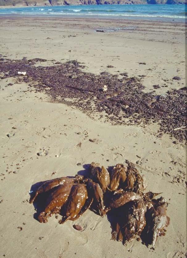 The effects were visible within hours. Slicks drifted out on the tide before being carried back onto shore, coating beaches from Tenby and Saundersfoot to Angle and Freshwater West in thick, tar-like crude.