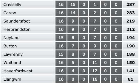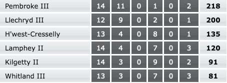 Llechryd III (15-2) beat H’west-Cresselly (14) by 8 wkts