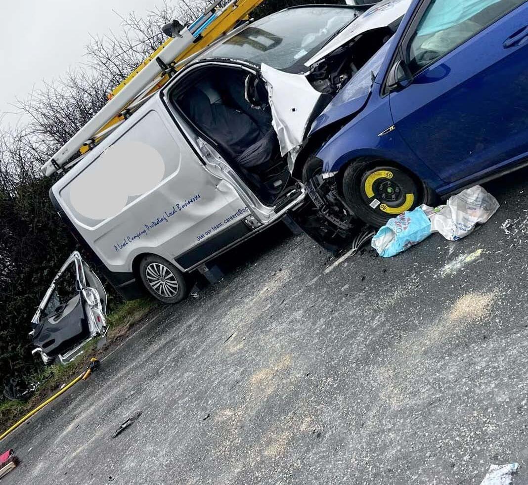 The crash involved a dark blue Volkswagen Golf and a silver Renault van, with both drivers taken to hospital for treatment. They have since been