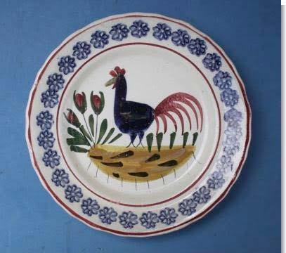 examples of Llanelli pottery. Notably, Alistair and Helen Crawford, along with Michael Gorton of Chapellane Antiques, are known for showcasing the iconic Llanelli “cockerel plates.” These hand-painted, folk-art plates, typically featuring a blue cockerel and distinctive borders, were crafted by Sarah Jane Roberts, affectionately known as Aunty Sal. She produced these unique pieces for over 40 years at South Wales Pottery.