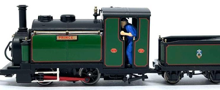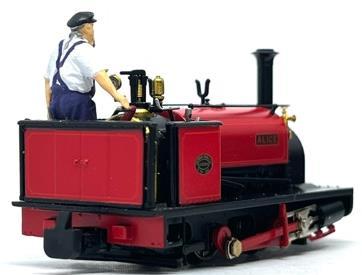 Made to fit in the Bachmann Quarry Hunslet with open cab. There is more space for him at the left side on the footplate, even though the Hunslet is a right hand drive. And it looks great!
