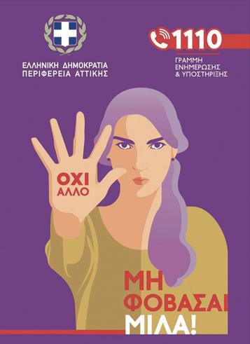 στην Ουκρανία. Συνεχίζουμε τις προσπά θειες μας όλες οι Περιφέ ρειες, ώστε κανείς να μην είναι μόνος του και αδύνα μος. #Περιφέρεια_Αττικής #AttikiAllazei Καμία γυναίκα μόνη της! Είμαστε εδώ για σένα! Μην φοβάσαι.. Μίλα! Στηρίζουμε και είμαστε ΕΔΩ για τα θύματα. Γραμμή υποστήριξης και βοήθειας θυμάτων εν δοοικογενειακής βίας στο 1110 της #Περιφέ ρεια_Αττικής! Ενημερωτική Δράση της Περιφέρειας με αφορμή τη σημερινή Διεθνή Ημέρα για την Εξάλειψη της Βίας κατά των Γυναικών. #λέμε_όχι_στη_βία